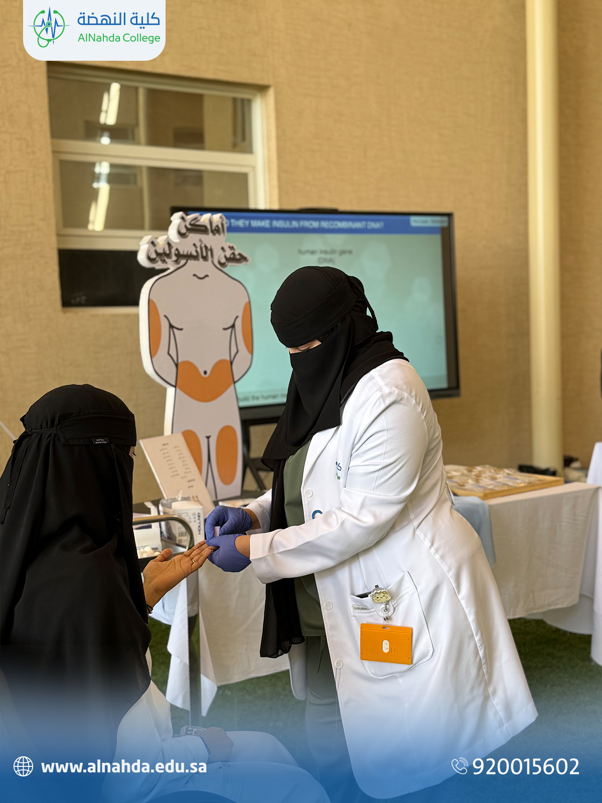 في إطار حرصها على تعزيز الوعي الصحي، نظّمت كلية النهضة فعالية توعوية بالتزامن مع اليوم العالمي للسكري، بهدف نشر ثقافة الوقاية والتعريف بطرق التعامل مع المرض، وتعزيز المعرفة بين الطلبة والمشاركين حول أهم الأساليب الحديثة في التشخيص والعلاج وإدارة السكري.